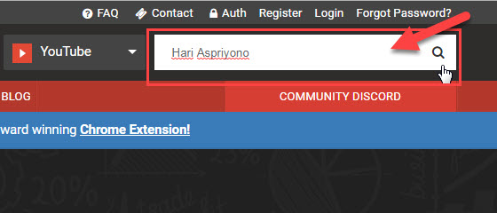 Setelah anda buka laman tersebut di bagian kanan atas terdapat kolom pencarian, isi dengan nama channel youtube yang ingin ditampilkan.