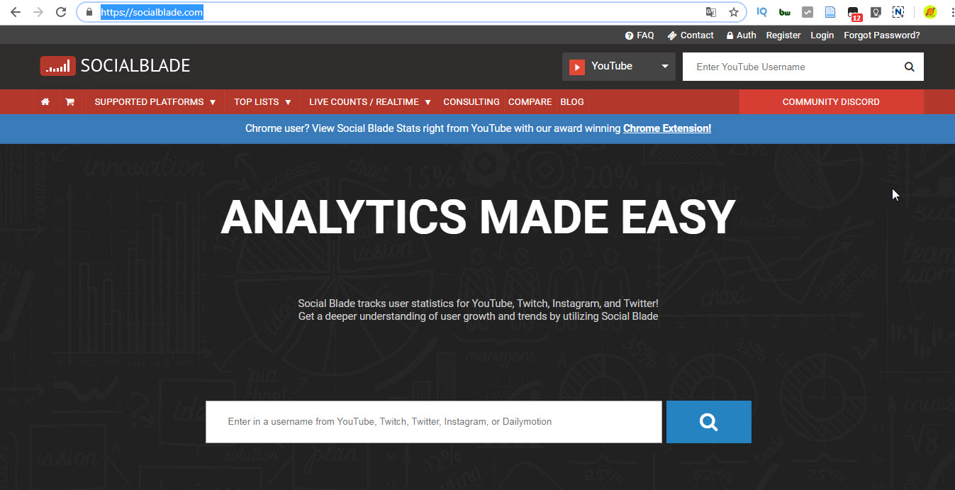 https://socialblade.com/). Tampilan dari laman SOCIALBLADE dapat dilihat pada gambar berikut ini: