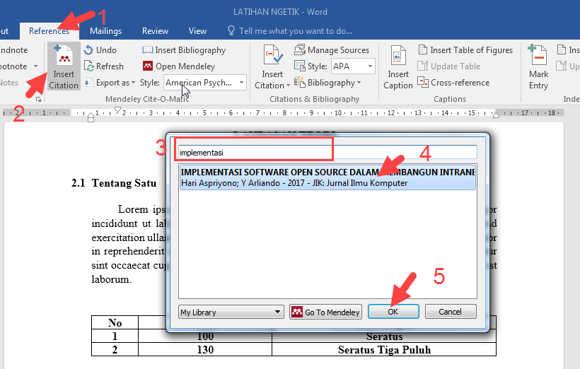 Berikut ini adalah langkah demi langkah untuk mengutip referensi pada Microsoft Word dengan Aplikasi Mendeley: